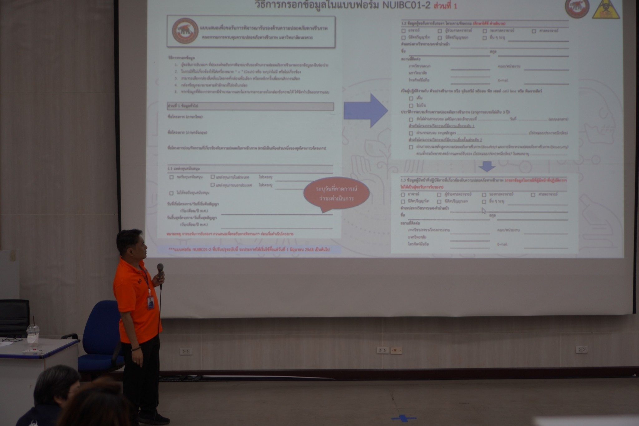 จัดการอบรมส่งเสริมความรู้ความเข้าใจในการกรอกแบบฟอร์มด้านความปลอดภัยทางชีวภาพ สำหรับนิสิต นักวิจัยของมหาวิทยาลัยนเรศวร ประจำปีงบประมาณ 2568 จำนวนทั้งสิ้น 63 คน ในวันพุธที่ 21 พฤษภาคม 2568 เวลา 13.00 – 16.30 น. ณ ห้อง Slope MD 235 คณะวิทยาศาสตร์การแพทย์ มหาวิทยาลัยนเรศวร โดยมีวัตถุประสงค์เพื่อให้นิสิต นักวิจัยของมหาวิทยาลัยนเรศวร มีความรู้ความเข้าใจที่ถูกต้องเกี่ยวกับการกรอกแบบฟอร์มด้านความปลอดภัยทางชีวภาพ